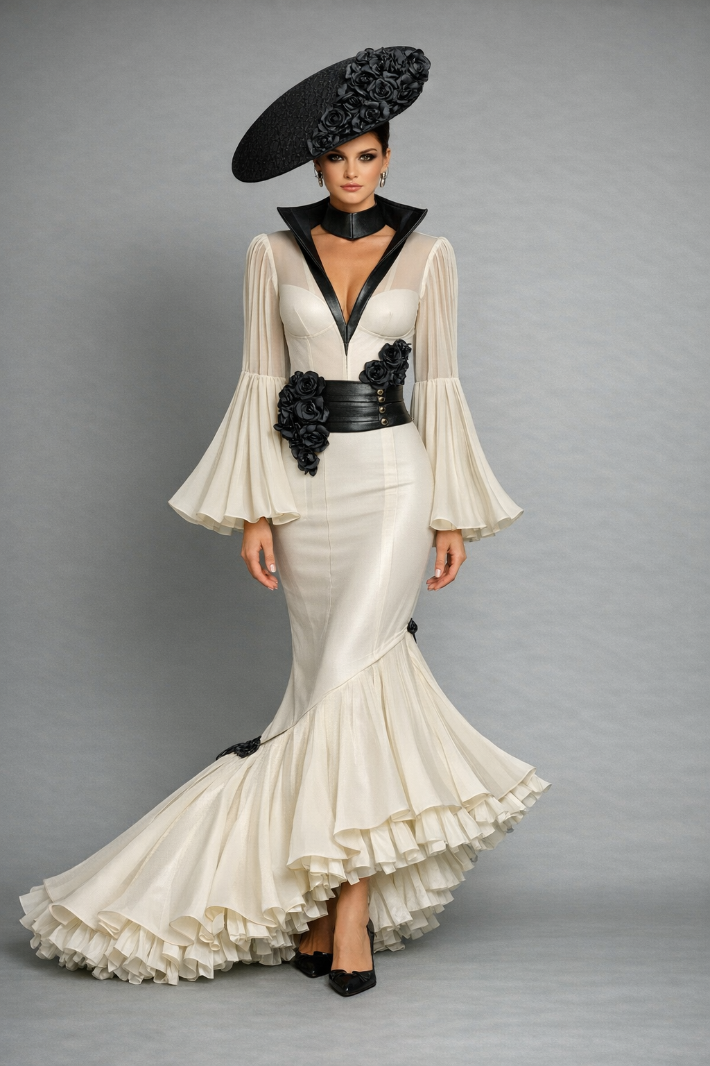 Ispirato all’intensità di Siviglia, questo abito couture incarna il fuoco, la passione e il magnetismo femminile in una forma scultorea e sensuale.…