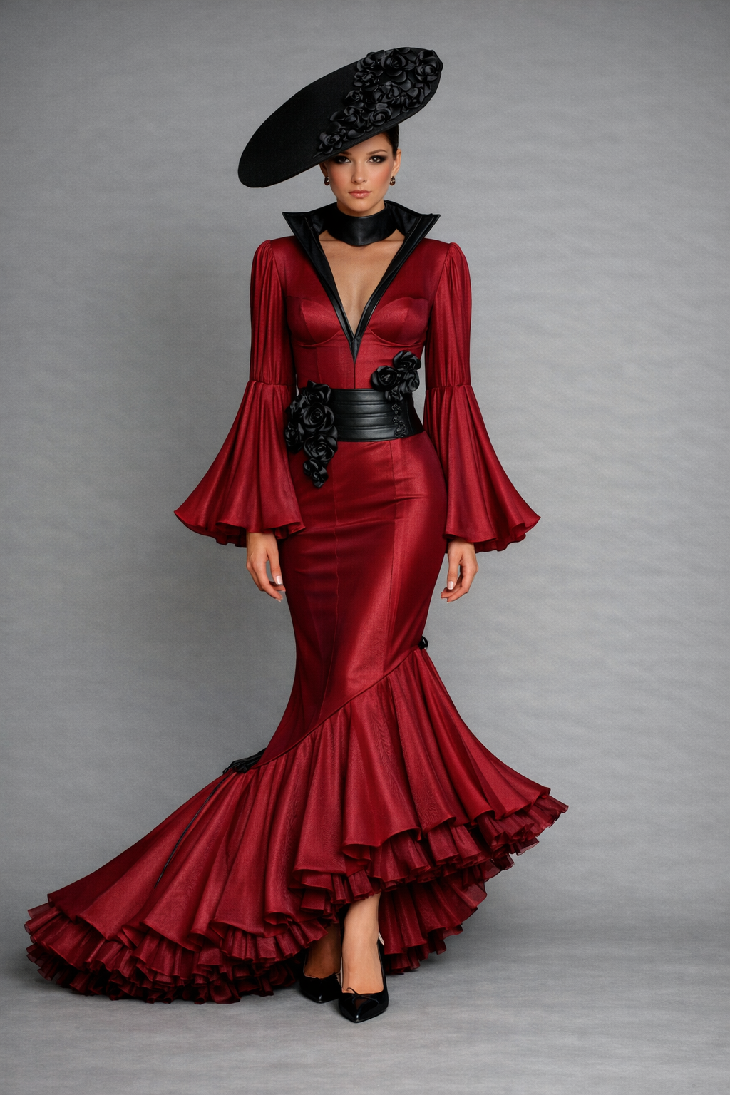 Ispirato all’intensità di Siviglia, questo abito couture incarna il fuoco, la passione e il magnetismo femminile in una forma scultorea e sensuale.